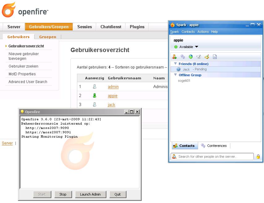 What’s real-time collaboration? Well: amongst others instant messaging, web-conferencing, VoIP and the like. Look at openfire for a Open Source alternative. As with O3C: easily implemented. A nice feature is the web-based management console. An instant messaging client to use with openfire is the Open Source client Spark.