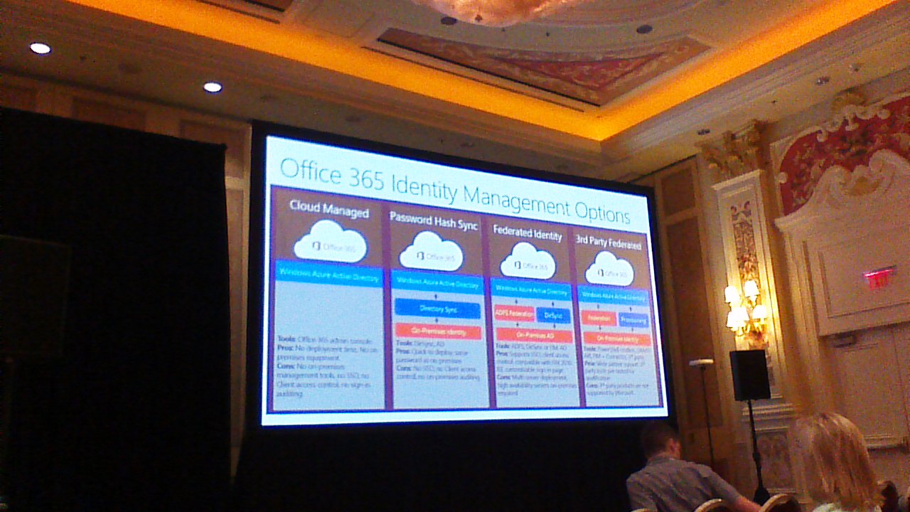 During this session, Microsoft announced DirSync LDAP v3. This is used to enable the provisioning of users to Windows Azure AD. This new version will be previewed in mid-2014. Also announced: the Office desktop browser authentication upgrades. This enables the Office applications to use tokens for authentication. In fact: the Office apps Will no have the same authentication functionality as the browser based clients.