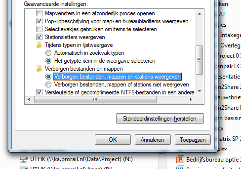 - Make sure that in the Windows Explorer settings, the option “show hidden files” is selected;