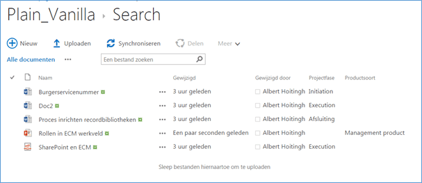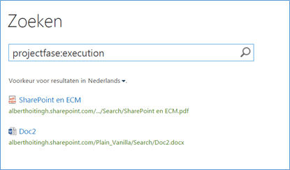 People from the Project Management Office come to my door regularly to ask if there are ways to aggregate all documents related to the Execution phase of all projects. Anticipating such a question, I have already added the Projectfase column as a managed property, connected to the crawled property.