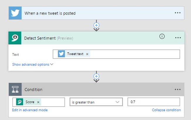 Then I used the Tweet text as input for the text analysis. The resulting score was used to add the sentiment to the SharePoint list.