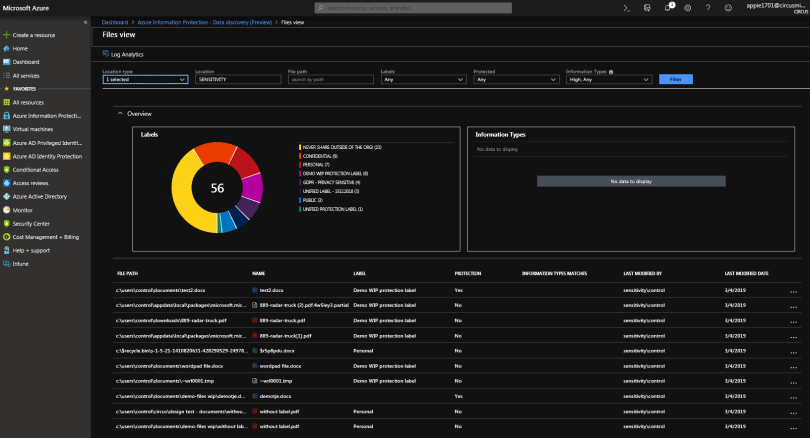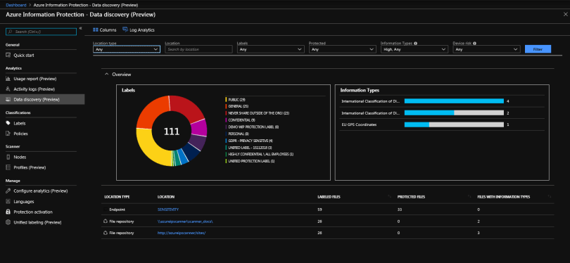 From a high level, the functionality is relatively easy. Azure Information Protection uses an Azure Log Analytics workplace to store information on sensitive data, labels and more.