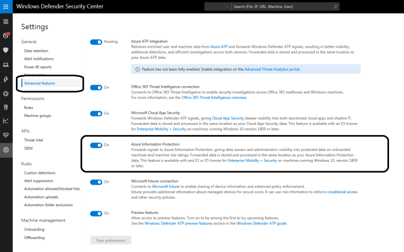 To enable this in Windows Defender ATP, just go to Settings | Advanced Features | Azure Information Protection.