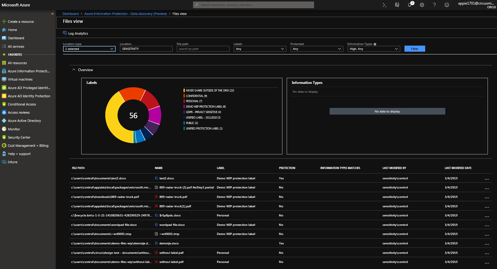 From a high level, the functionality is relatively easy. Azure Information Protection uses an Azure Log Analytics workplace to store information on sensitive data, labels and more.