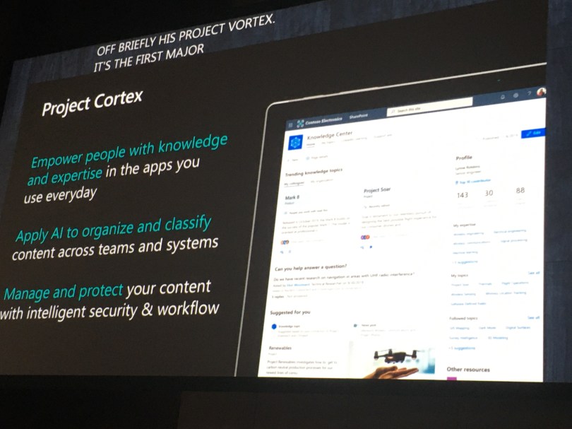 Project Cortex – using Delve and the Office Graph to transform your information into a real-time knowledge base. It used the Graph to find that information, but you can also use Azure image capture and machine training. It’s integrated into all aspects of Office 365. Really, really cool. Https://aka.ms/projectcortex