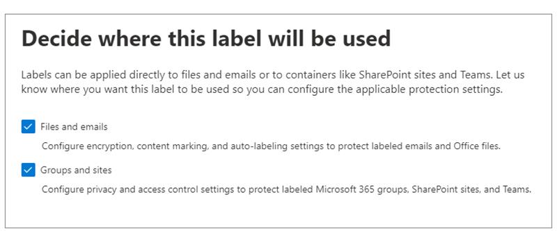 However, such a label also shows up when working with documents and e-mails. So Microsoft is going to enhance this capability. In the short-term you can select if you want a label to be used for documents and e-mails or containers (sites\teams) or both. The later is the default configuration.