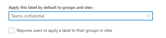 You still need to create a policy in order for your users to select the label. But these settings have also been enhanced. Because of the importance of container-based labels, you can now provide a default label and require your users to select one. If this latter one is not selected, people creating teams/sites can also select “None“.