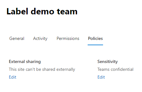 Normally these settings would be done by your administrator and the provisioning process for your sites/teams. But using the labels, these settings are applied based on the label. So let’s take a look.