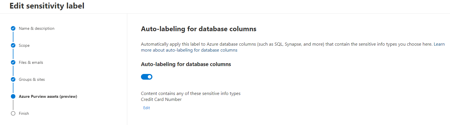 When labeling database assets, you can use the build-in sensitive information types to determine what needs to be detected. The scan in Purview will determine the labels based on the auto-labeling rule you set-up.