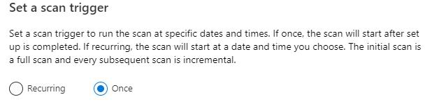 When you continue, you are presented with the content of the source and you can adjust your scope if needed. Next is the scan rule set. There are many out of the box configurations, but you can add your own – if needed. A rule set basically defines what to scan and what to look for. If you want specific filetypes to be scanned or scan specific classification types, then this is the way to do that. After this, you can set the scan to be manual or recurring. After this, the scan will start.