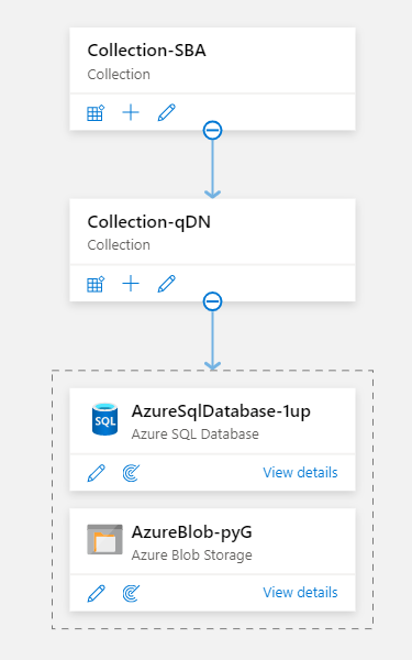 Azure Purview allows you to create an overview of your Azure (and others?) cloud storage location for either documents (blob for example) and structured data (like SQL). You can organize your dashboard in collections and sub-collections. In my example, I’ve created a collection, sub-collection and the sample data sources.