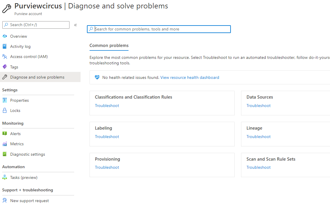 If you need to, you can access some nice support material from the Azure Purview page. This includes a nice “troubleshooting” guide. Nice to notice, some of these support pages still reference the name “Babylon”, which was the codename for Azure Purview 🙂