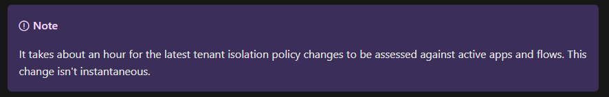 Like I said, this is still in preview. If you want to learn more on this feature, then go to: https://docs.microsoft.com/en-us/power-platform/admin/cross-tenant-restrictions?WT.mc_id=EM-MVP-5003084