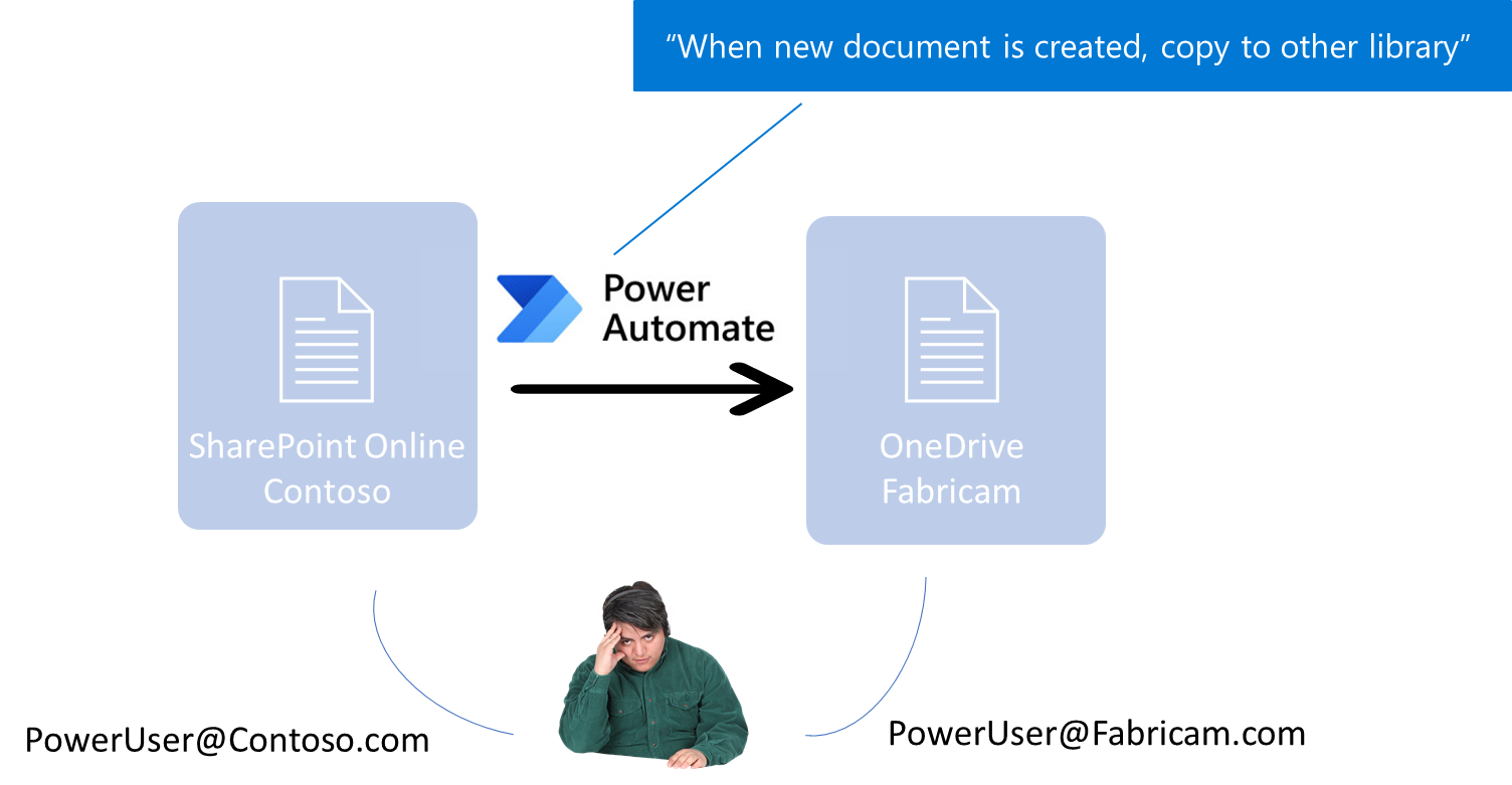An example; I’m a user and have access to multiple Microsoft 365 tenants. I use different identities to log in to these tenants. And I want to have all documents stored in a SharePoint Online site in the Contoso tenant to be copied to my Fabricam tenant when these are created. At this moment, this is no problem. There’s no DLP policy to block this action.