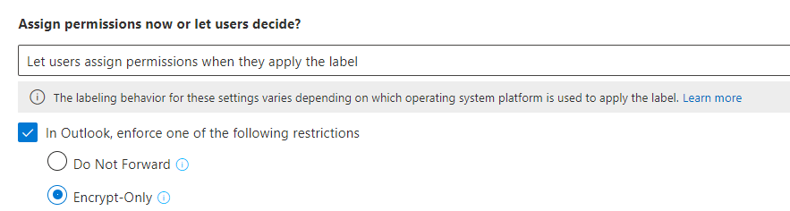 Especially the Encrypt-Only for emails function is very relevant. As you can select this option in the labeling portal, admins and users expect this option to work. However, it only works for this integrated client in Outlook.