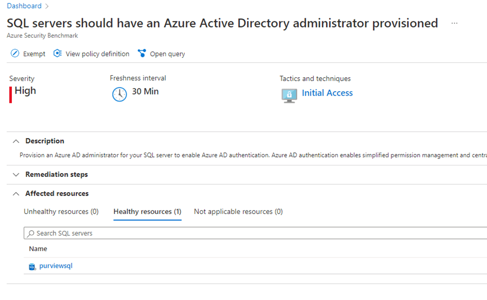 Working from the dashboard, you can see the controls and recommendations. You can use these to assign an owner for tracking and solving the potential problem. In some cases, you might have an Azure Log App available that can remediate the problem. You can run this on the selected resources.