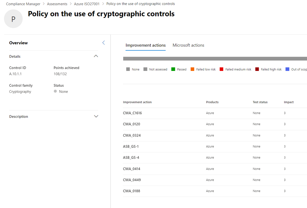 And the Compliance Manager also includes specific assessments for Azure. So it makes sense to look at these first. And for this, I’ve looked at the ISO27001 assessment for Azure.