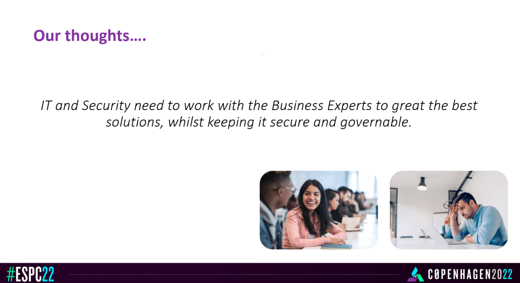 The session I presented together with Daniel centered around the Power Platform. That might be somewhat outside of my comfort-zone, but not quite. I believe that governance, compliance and risk goes beyond the more standard platforms within Microsoft 365. And the Power Platform is definitely one of those.