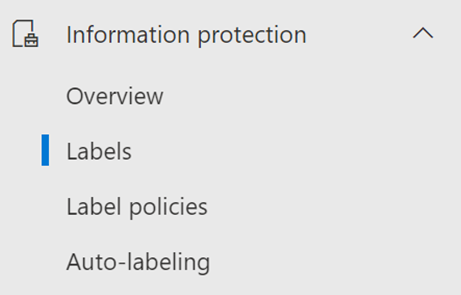 First off – the Microsoft Purview Compliance center now shows the options for Information protection in the left-hand side menu, instead of in the dashboard. This can be handy but needs some getting used to.
