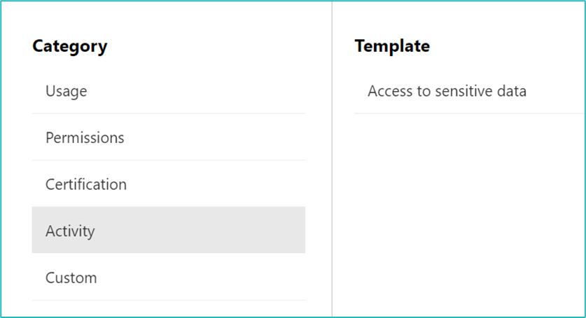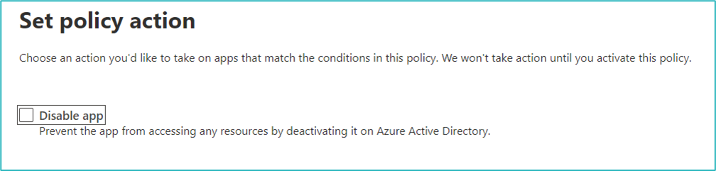 App governance comes with a set of pre-defined policies. You can choose to use these, edit them, or create your own. When creating your own policy, are assisted by pre-formed templates. These templates come with built-in settings.