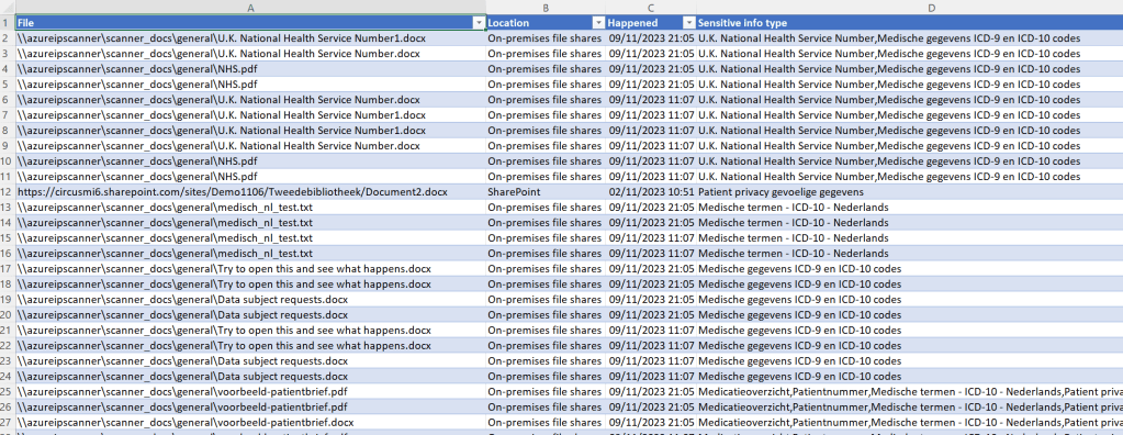 One nice thing about this portal is when selecting the sensitive type, you get an overview of all SITs that were discovered in the specific document. This is also present in the locally stored log file. And as you can see, this document has a lot of medical type information.