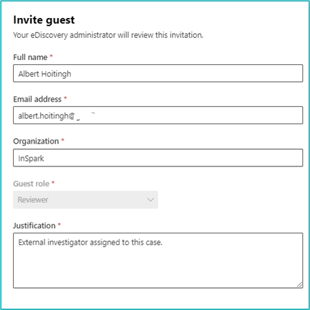 Next, we will invite the guest. All fields are mandatory here and the Reviewer role cannot be modified. Perhaps in future?