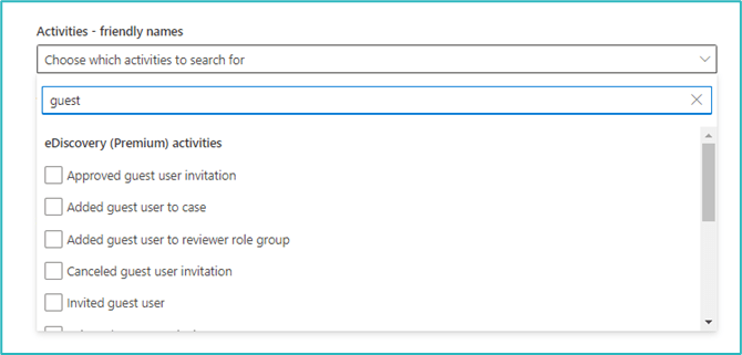To wrap this up. As (nearly) everything in Microsoft 365 is audited in the unified auditlog, we can expect this to be the case for these actions as well. And this is correct. Guest user administration for eDiscovery can be selected as specific activity in the Microsoft Purview Auditlog.