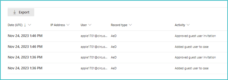 As Entra ID guest users cannot be added to the members of a case, working with external parties is difficult. And this might be relevant – for example: contracting an external investigation firm or lawyer to work together on the case.