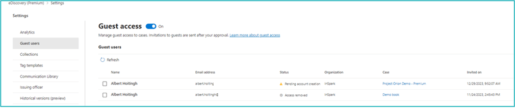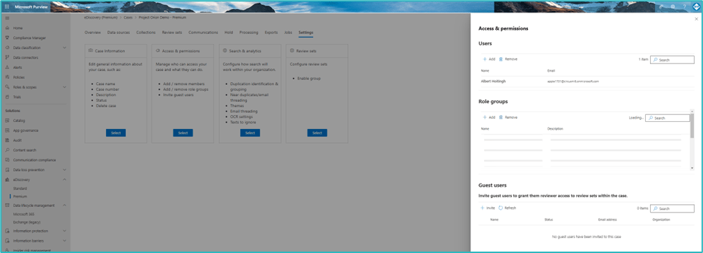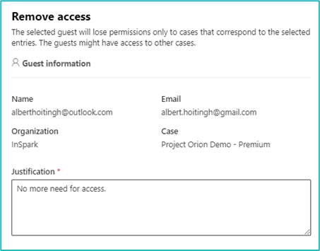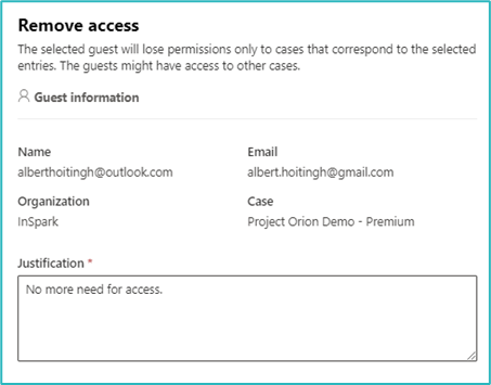 - When finished, the eDiscovery administrator needs to remove the guest from the case;