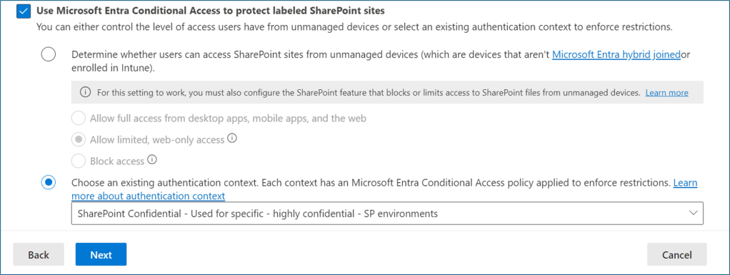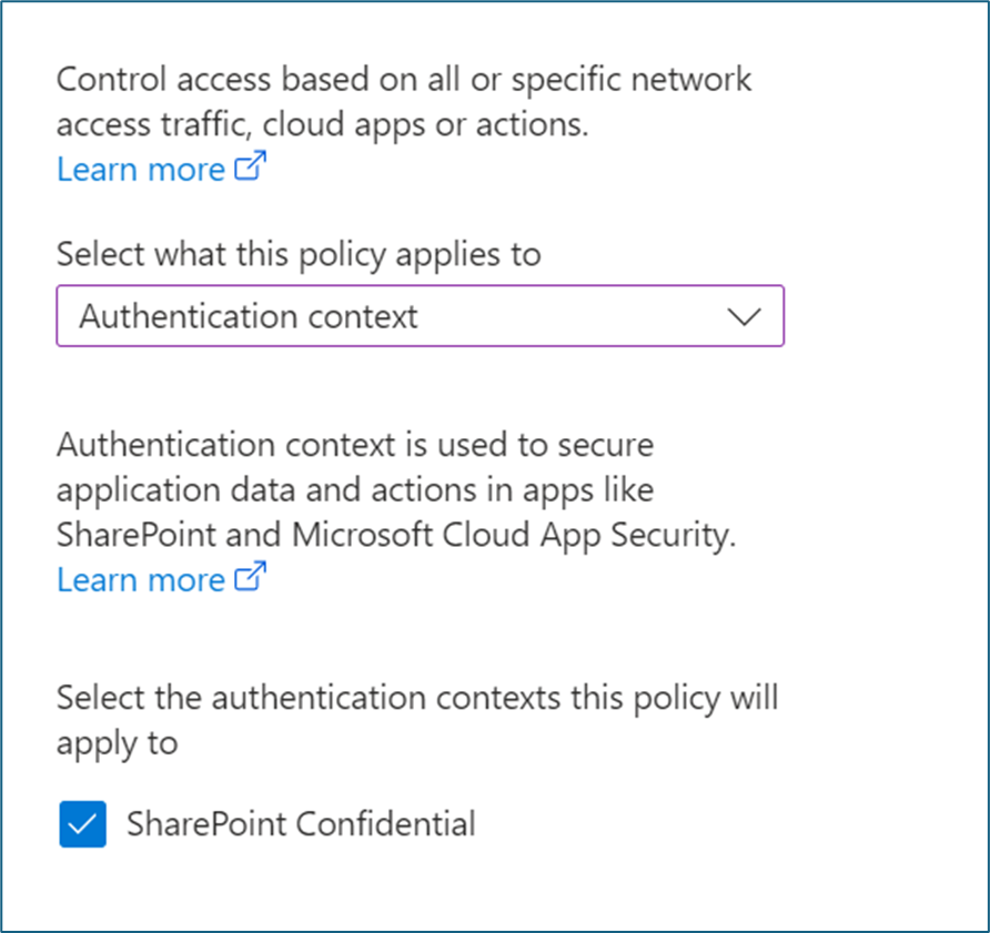 In Entra ID Conditional Access, we configure the rule to act on this specific Authentication Context.