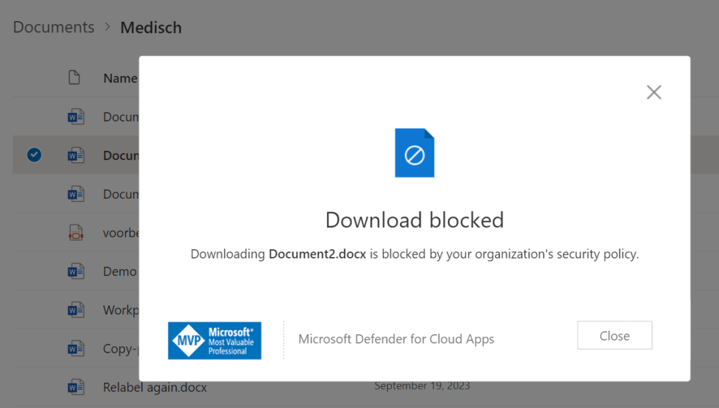 When an enterprise has the option to use Microsoft 365 E5 or equivalent licenses, do not hesitate to look into and use this platform. One great advantage of MDfCA is the ability to act on activities based on content and session inspection. And it is this ability which will solve our bonus-requirement.