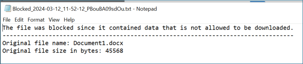 The download option is based on a build-in session policy. The user will see a message and a .txt-file will be downloaded.
