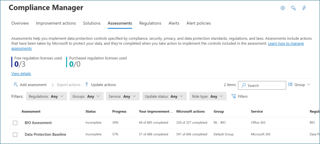 This NIS2 assessment can be helpful and I will explain how to add this in the Compliance Manager. However, as you can also read in the afterthought (below), this assessment is somewhat limited and does not offer automated checks. Many others do have this feature, and therefore I have included this in this article.