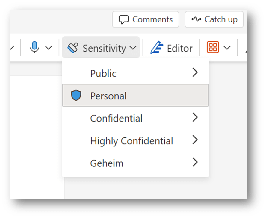 It has been decided to add a sublabel named Test to the label Personal and the label is added to the label policy. After this change has been propagated (it takes some time for a change to a label policy to take effect) you will notice this behavior.