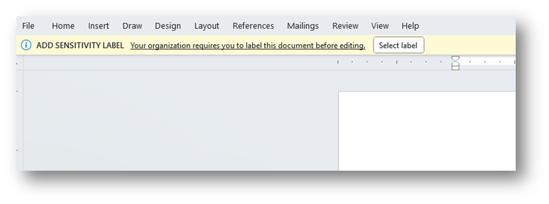 But when using the Microsoft 365 Apps, your users will be prompted to add a label. Remember: in this scenario and before the sublabel was added, they were used to having a default label applied. So this will become confusing and annoying.