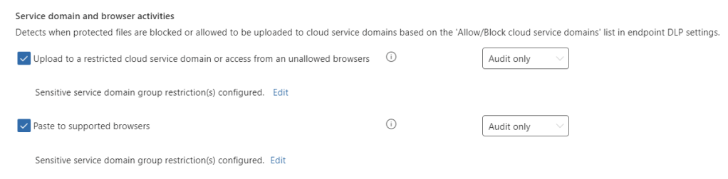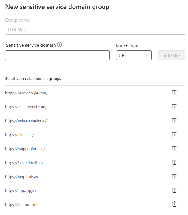 These LLM Sites are blacklisted in the settings for Endpoint DLP. You will see that this group is created when you create the policy.