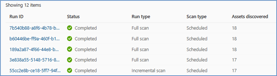 In the Microsoft Purview portal, we need to register both the Cosmos DB account and Azure Blob storage as a data source and configure a scan. These scans can be set to run automatically, which I would encourage.