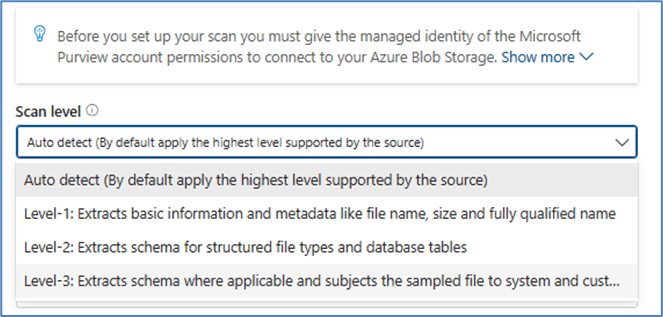 For Azure Blob storage, Purview will crawl through documents (including Office, PDF, CSV, JSON and more) and use deep data inspection to find sensitive data.