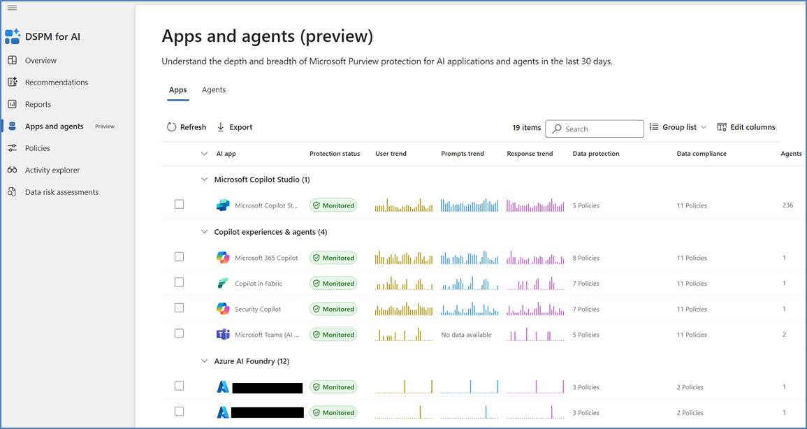 Amongst many things, Microsoft Purview is known for the ability to detect specific sensitive information in data. An example of this is the Data Security Posture Management for AI (DSPM for AI) module. This module lists sensitive interactions with AI, even on an agent level.