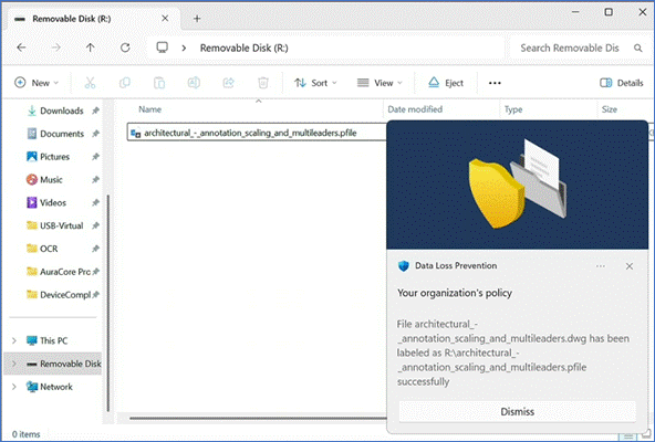 Because of the integration with Purview Endpoint DLP, when the file moved from the endpoint (say to removable disk), the protected format (and encryption) is applied again. Thus keeping the data secure. Because of the sensitivity label being applied, we can also use other Purview components that use these labels as part of their functionality.