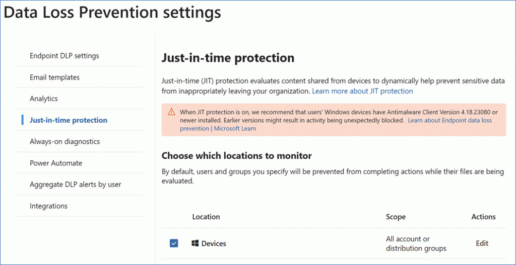 we basically tell SharePoint Online to treat every new file as “unscanned / unsafe” until DLP finishes scanning it. During this state, external users cannot access the file. This is relevant for the same reason as the new JIT-options; In SharePoint Online (and OneDrive), files need to be scanned when these are created or added. And this takes a bit of time. If you do want to risk sensitive information being leaked because of this, you will need to activate this setting and inform your users.