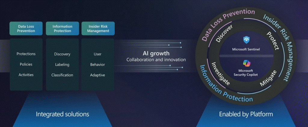 Even before the start of the AI wave, reducing data loss and combating insider risks was of paramount importance. AI and generative AI have boosted this importance. Therefore, we’ve extended our DLP capabilities for more AI scenarios. For example, if someone tries to use sensitive information in a Copilot or chat agent prompt, Purview DLP will detect it and refuse to provide a response – and preventing any leaking.
