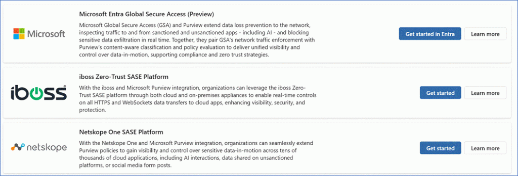 For this, we introduced network data security as a preview not long ago. This option allows you to integrate secure access service edge (SASE) solutions into Microsoft Purview enabling classifying HTTP(s) traffic sent from an endpoint device to websites, cloud apps, and generative AIs. These SASE solutions have now been updated to include Entra Global Secure Access (GSA).